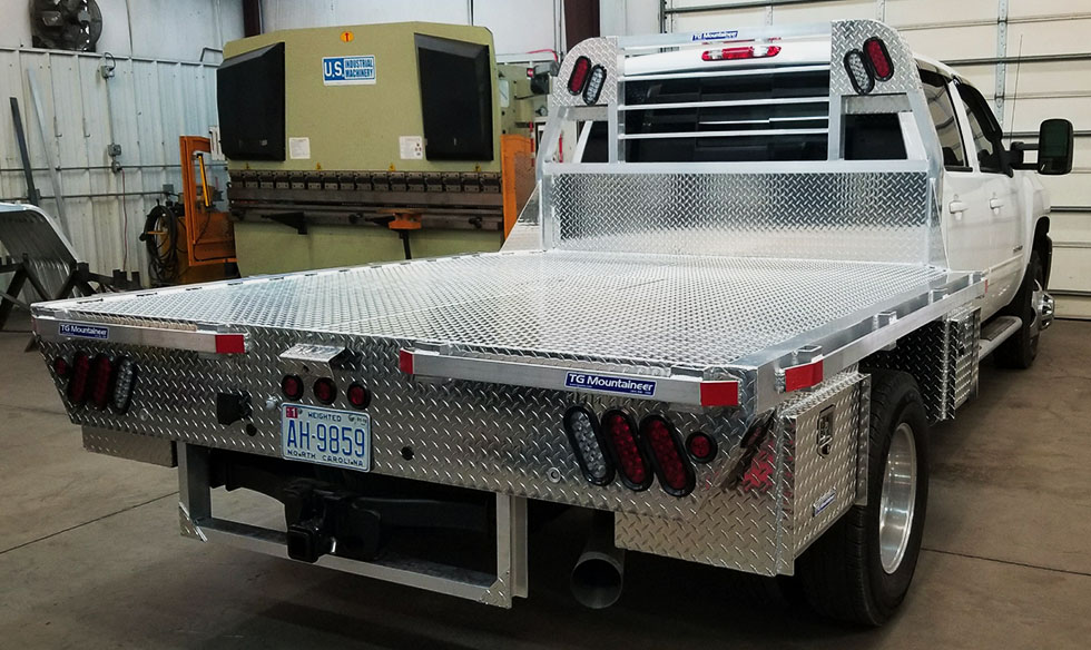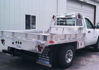 We custom build each bed and toolbox one at a time, all of our standard beds are built to fit truck properly, built on 12″ centers, standard diamond tread floor is available in 11 gauge and we have a upgraded super heavy duty floor available upon request(1/4″). Each bed comes standard with stake pockets, rubrails, deluxe light package, heavy duty headache rack, all wiring in conduit, connections are heat sealed, cleaned and buffed, 100 Percent guarantee on all work.